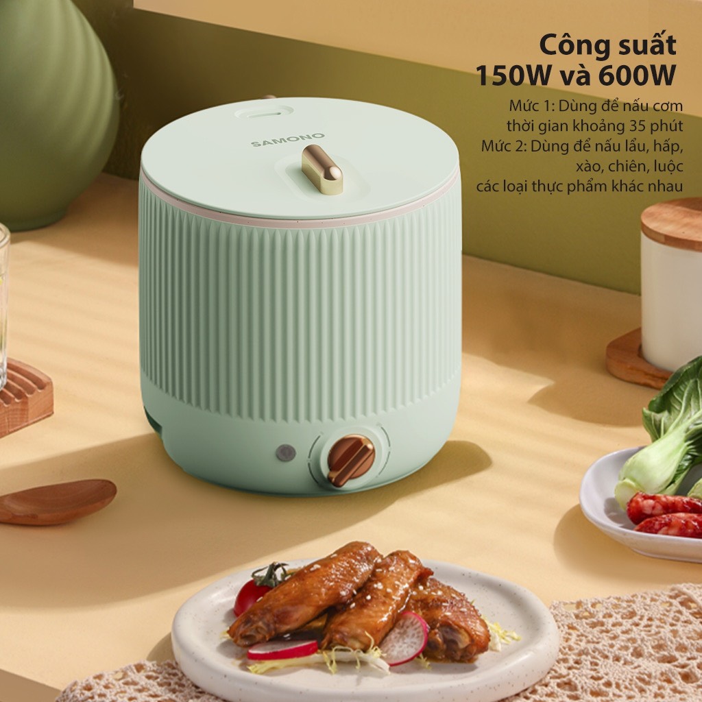 Nồi nấu hấp đa năng Samono dung tích 2l phù hợp nhu cầu cho 2-3 người nấu nướng thỏa thích. Không chỉ nấu lẩu, nồi còn có thể dùng để xào, rán, hầm,…rất tiện dụng. Nồi có thể thay thế bếp gas tiện lợi, tiết kiệm năng lương. Nồi nấu hấp đa năng Samono có tự tắt khi quá nhiệt tránh làm hư hỏng phụ kiện do nhiệt độ cao và sẽ tự tắt khi nấu khô tránh làm hư đáy nồi. Bên cạnh đó, dưới đáy nồi còn trang bị 2 lớp chống dính Ceramic giúp chống dính tốt, không bong tróc, giúp dễ dàng vệ sinh sau khi dùng.