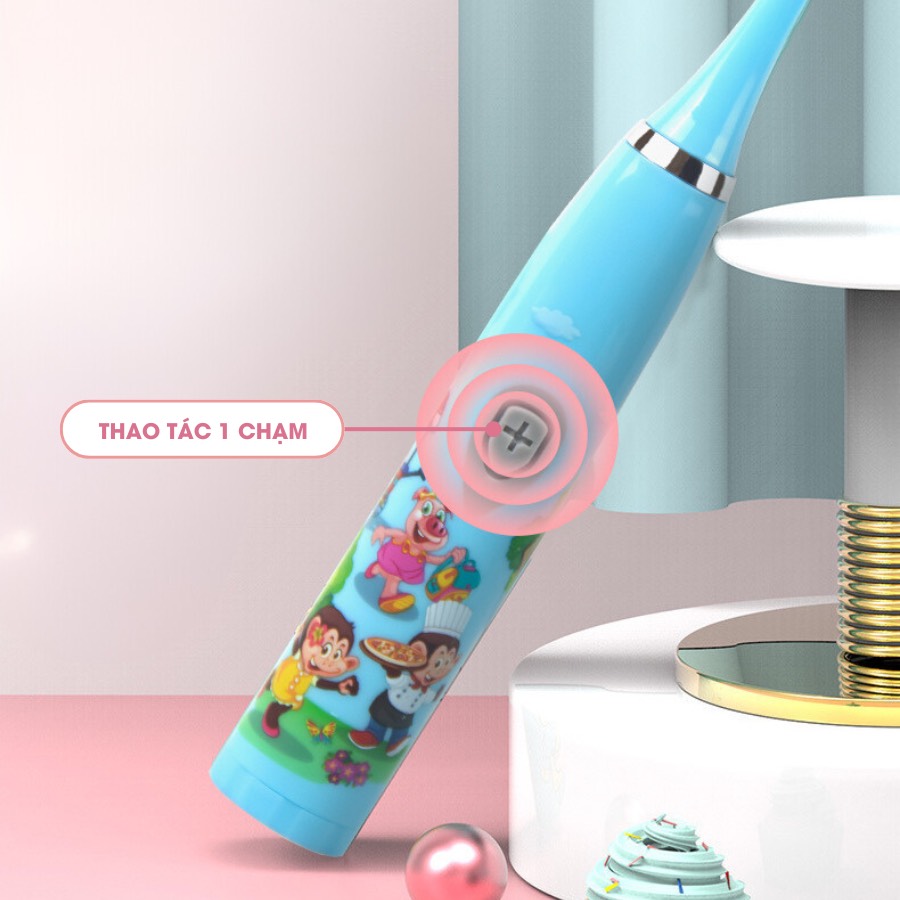 - Thao tác 1 chạm: Sử dụng đơn giản, dễ dàng cho bé tự đánh răng mà không cần sự trợ giúp của người lớn.