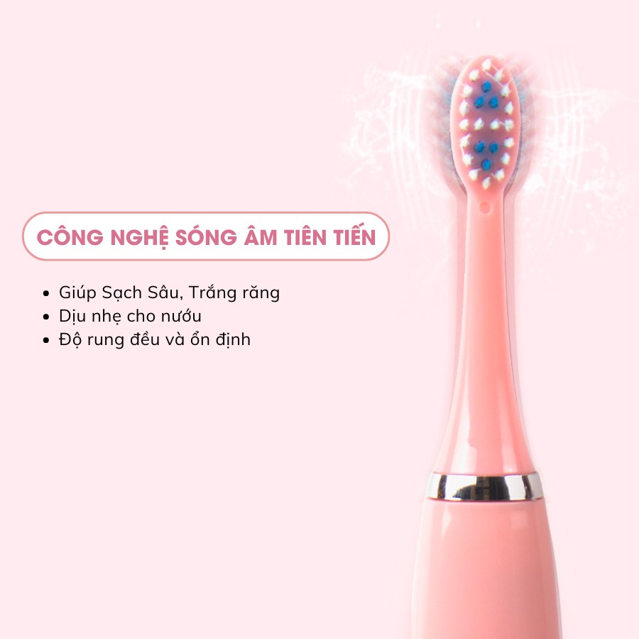 - Công nghệ sóng âm tiên tiến: Tạo ra hàng nghìn rung động mỗi phút, giúp loại bỏ mảng bám, vụn thức ăn hiệu quả gấp 10 lần so với bàn chải thông thường.