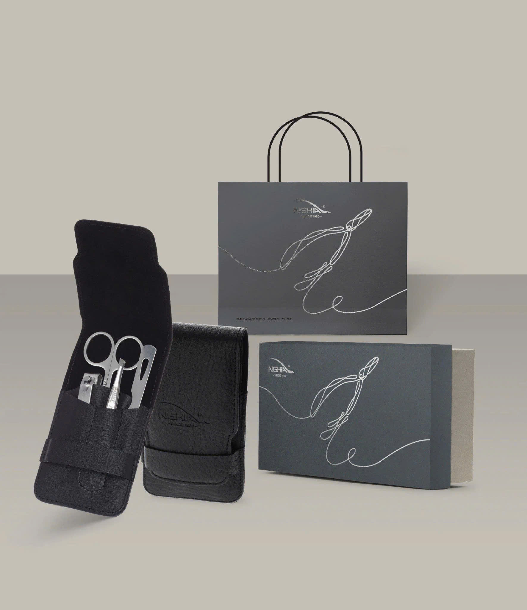- Thiết kế tinh tế:Bộ sản phẩm gồm 4 dụng cụ cần thiết: bấm móng, cây lấy khóe, kéo cắt móng và nhíp, được thiết kế nhỏ gọn, tiện lợi để mang theo bên mình.