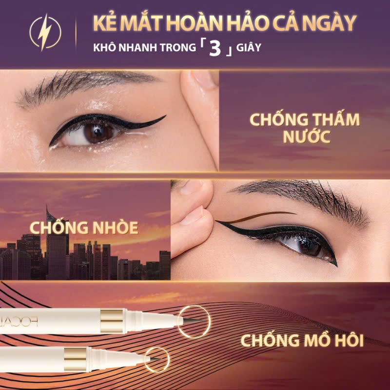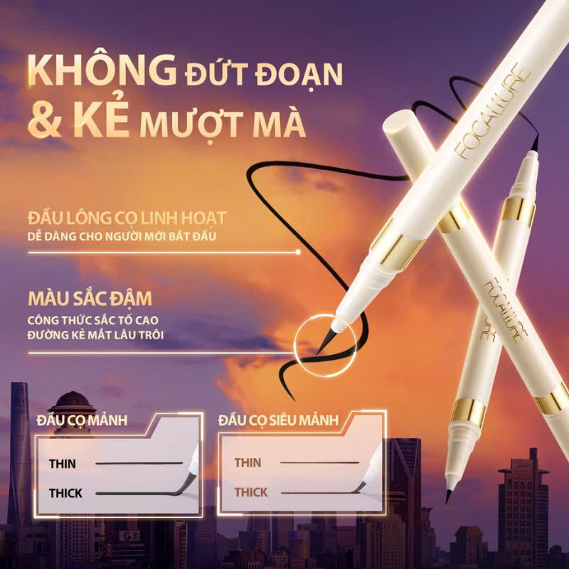 Bút kẻ mắt FOCALLURE dạng lỏng 2 trong 1 không thấm nước 1.2g