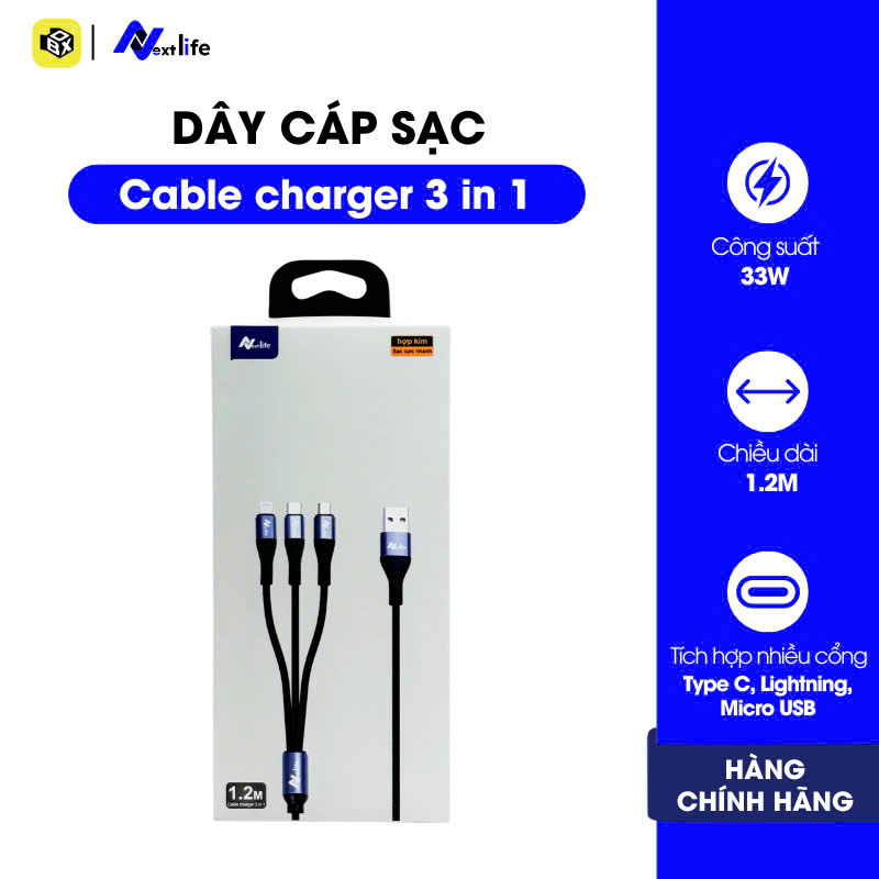 • Tên: Cáp sạc Nextlife 3 in 1 Z12