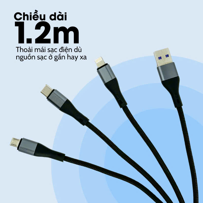 • Có chiều dài là 1,2m giúp cho bạn có thể thoải mái sử dụng mà không cần phải lo lắng dù thiết bị ở gần hay xa nguồn sạc.
