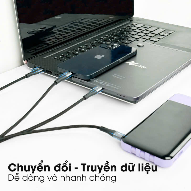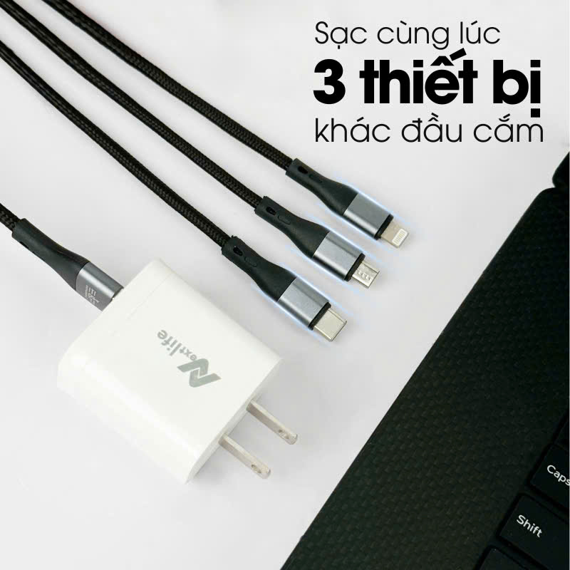 Cáp sạc Nextlife  3 in 1 Z12 – Cáp sạc đa năng tích hợp nhiều cổng (Type C, Lightning, micro USB) trong 1 dây giúp người dùng có thể sạc được các thiết bị khác nhau cùng lúc nhanh chóng và sao chép/truyền dữ liệu tiện lợi, mang đến những trải nghiệm tối ưu.