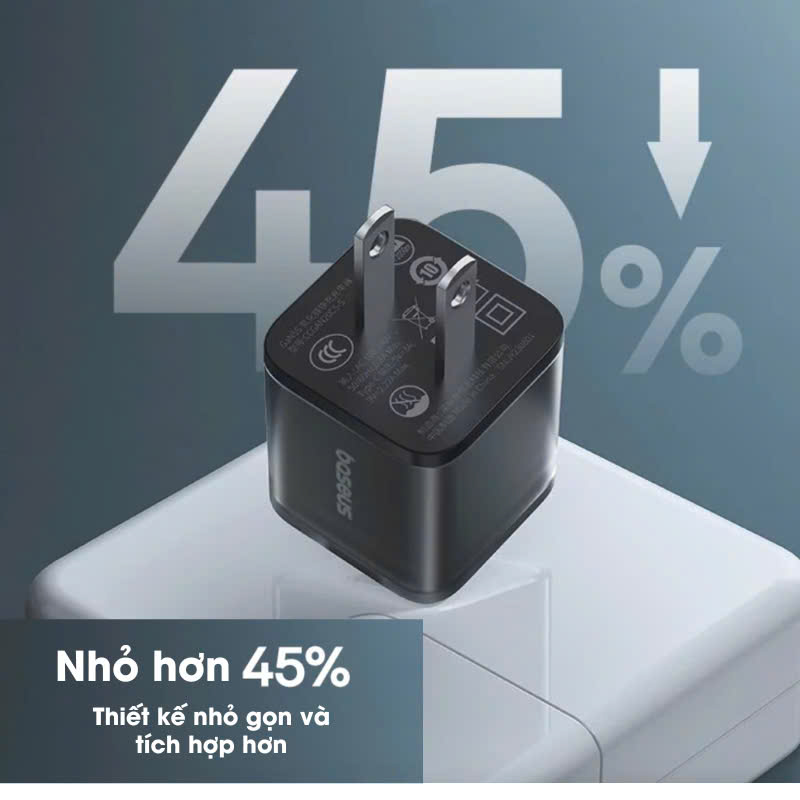 - Được thiết kế với công nghệ GaN (Gallium Nitride), giúp tối ưu hóa hiệu suất sạc và giảm kích thước của bộ sạc.