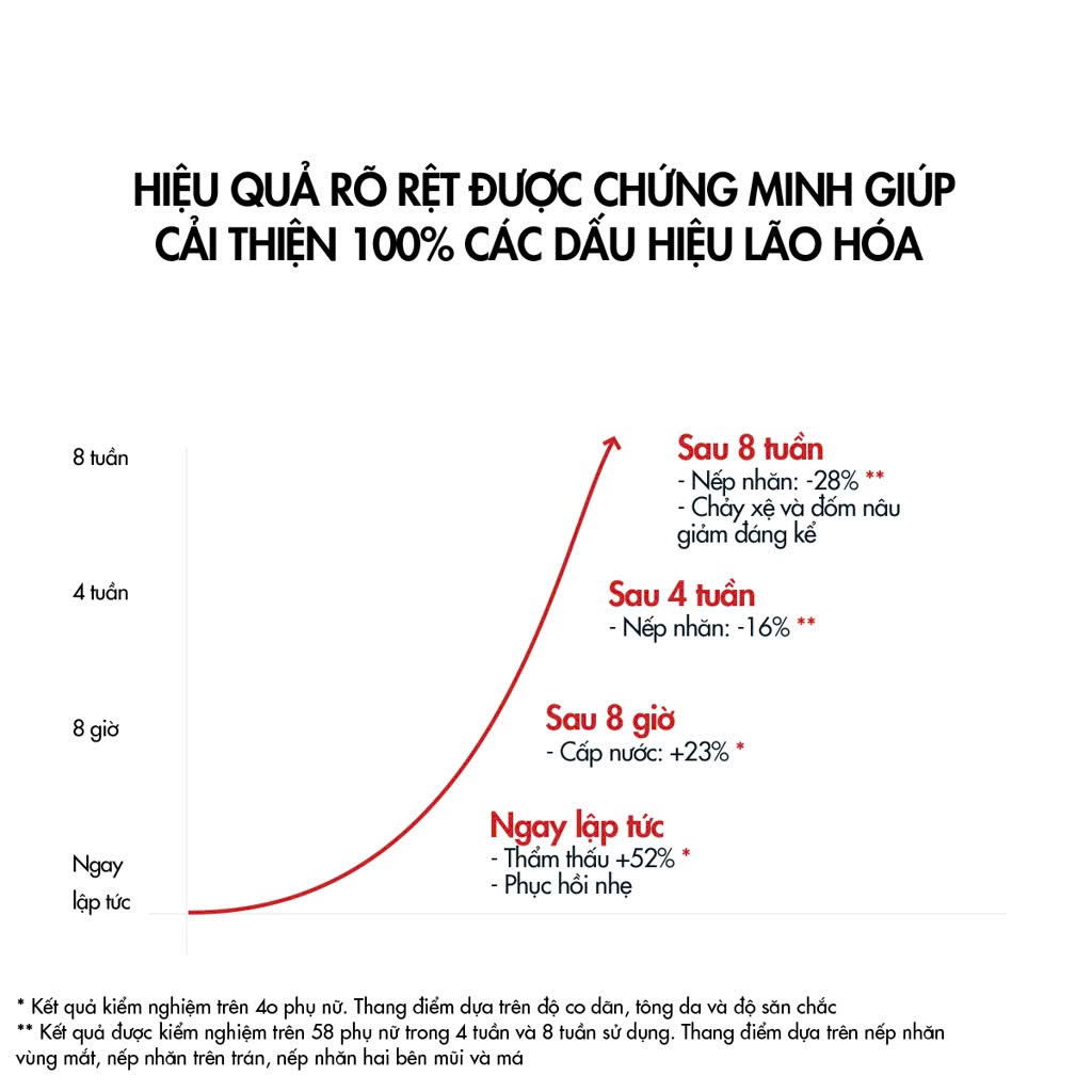 - Giảm nếp nhăn 16% sau 4 tuần và lên đến 24% sau 8 tuần sử dụng