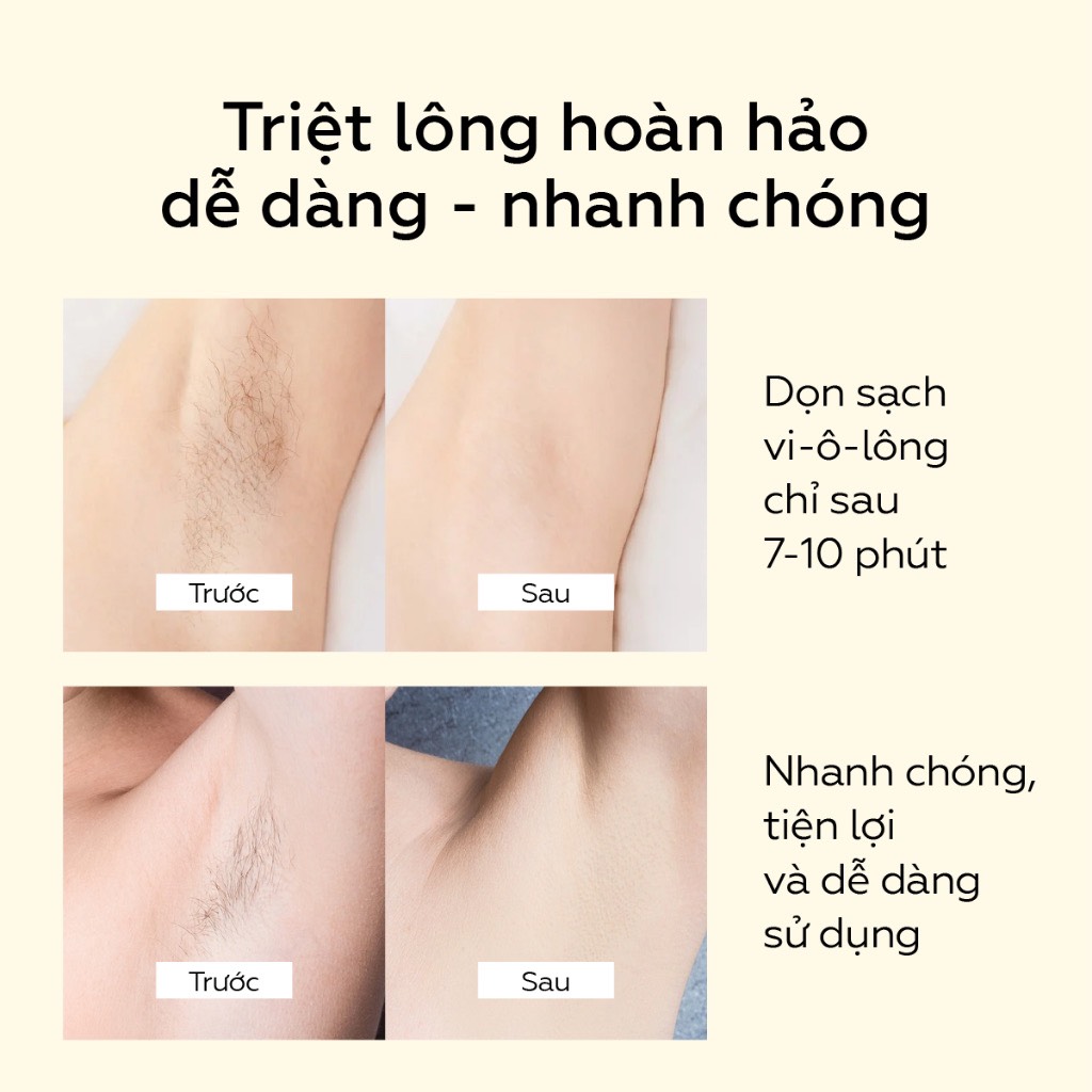 - Tiện lợi, dễ sử dụng: Tẩy lông nhanh chóng, chỉ mất 7-10 phút.