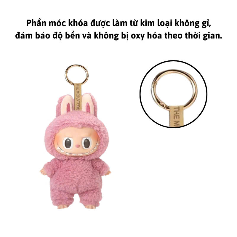 • Móc khóa lấy ý tưởng từ các nhân vật trong Labubu. Labubu là một trong các nhân vật của Vương quốc Quái Vật, mang hình hài một quái vật thỏ với đôi tài dài và hàm răng sắc nhọn. Tuy vậy nhân vật này không hề đáng sợ mà còn vô cùng đáng yêu nhờ ngoại hình tròn mập, đôi mắt to tròn và nụ cười ranh mãnh. Thiết kế móc khóa hình Labubu cũng được fan sưu tập rất nhiệt tình. Màu hồng nhẹ nhàng của sản phẩm mang lại cảm giác thanh lịch và dễ dàng kết hợp với nhiều loại phụ kiện khác nhau.