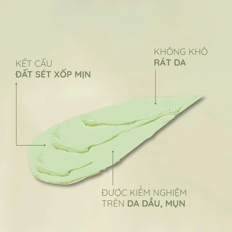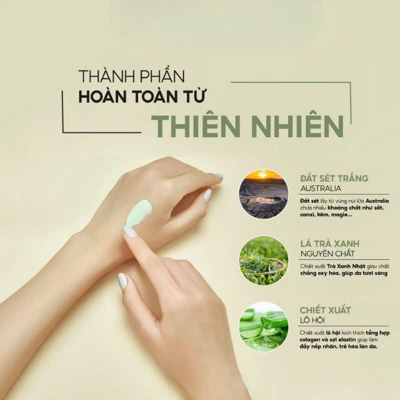 - Thành phần chính được điều chế từ đất sét trắng với kết cấu xốp hỗ trợ làm sạch da và giúp giảm dầu thừa và hỗ trợ lấy đi tế bào chết trên da