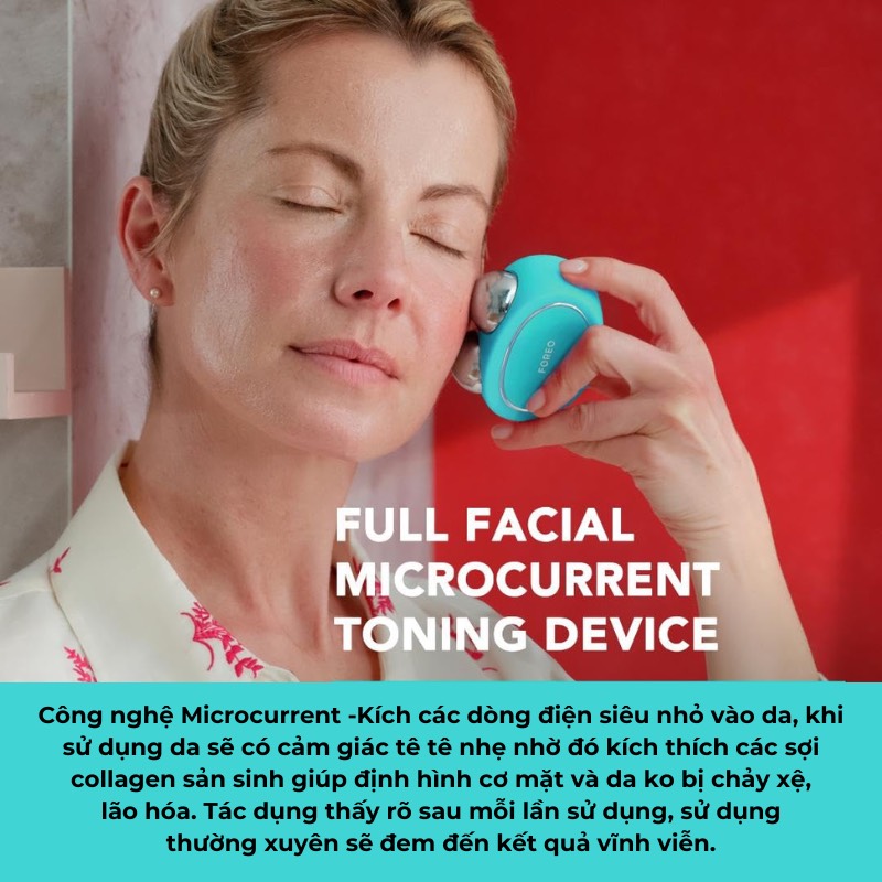 • Công nghệ Microcurrent: kích các dòng điện siêu nhỏ vào da, khi sử dụng da sẽ có cảm giác tê tê nhẹ nhờ đó hỗ trợ các sợi collagen sản sinh, hỗ trợ định hình cơ mặt và da ko bị chảy xệ. Sự thay đổi tích cực thấy rõ sau mỗi lần sử dụng, sử dụng thường xuyên sẽ đem đến kết quả tốt.