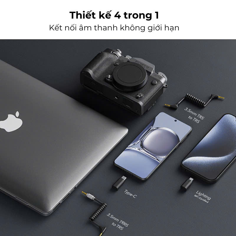 - Tần số 2.4 GHz, dễ dàng sử dụng: Sản phẩm được hoàn thiện đơn giản, khá ít nút vật lý để người dùng dễ sử dụng và trọng lượng rất nhẹ, di chuyển nhanh chóng, thuận tiện. Microphone này hoạt động trên tần số 2.4 GHz không bị nhiễu, đảm bảo âm thanh rõ ràng.