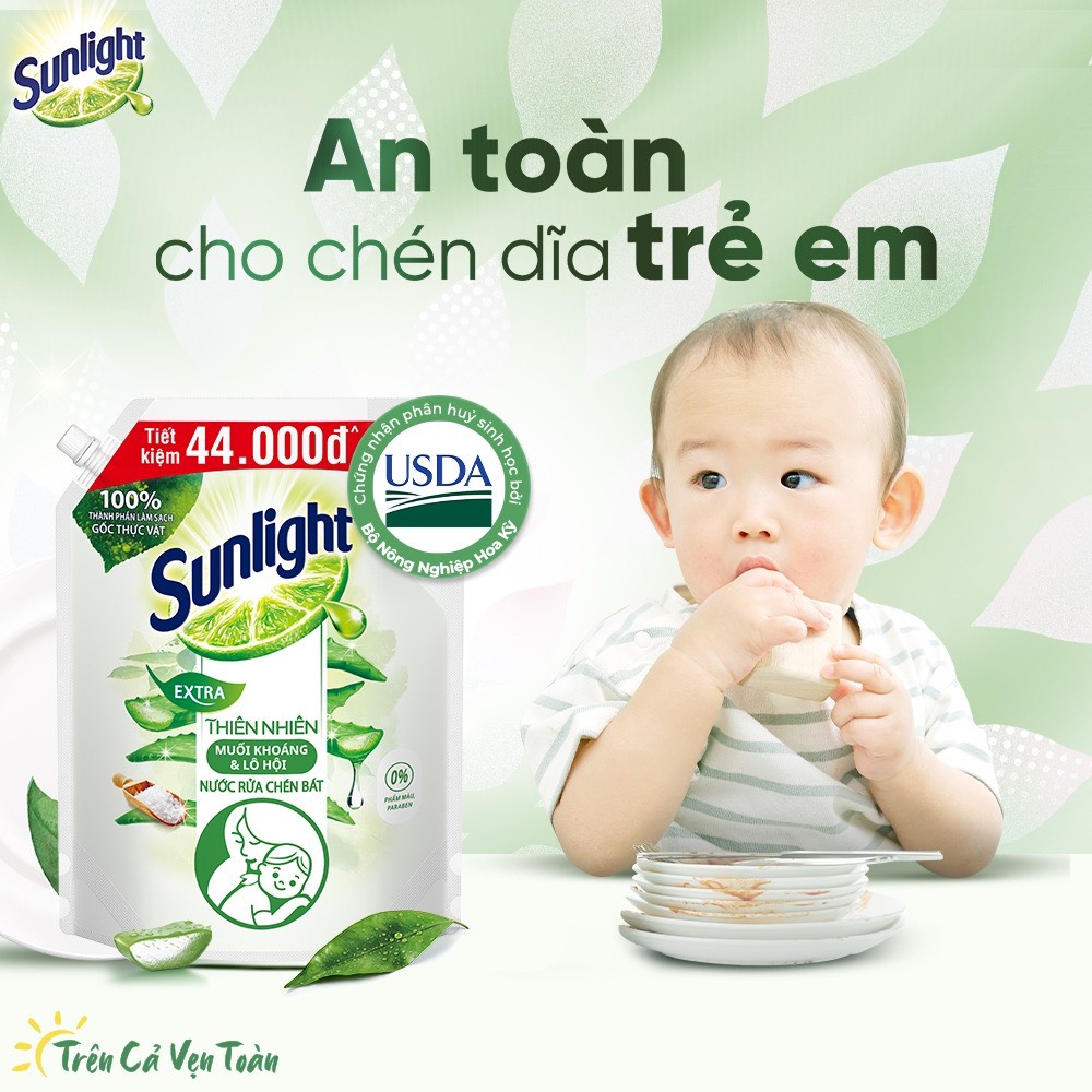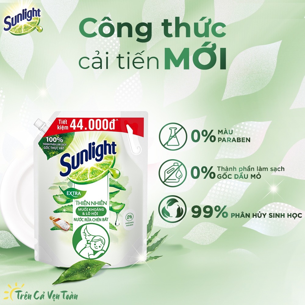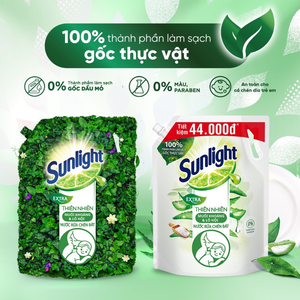 Sunlight Muối Khoáng & Lô Hội: Chiết xuất lô lô (100 ppm), Magiê Sulfate (Muối Khoáng 0,7%), Chiết xuất Chánh (100 ppm), Natri Linear Alkybenzen Sulfonate, Natri Laureth Sulfate, Cocamidopropyl Betaine, Chi ất thơm, Hydantoin , Tetrasodium EDTA, Methylchloroisothiazolinone, Methylisothiazolinone, Nước Sunlight Trà Nhật: Chiết xuất Trà xanh Matcha Nhật Bản (25ppm); Chiết xuất Chánh (10ppm), Natri Linear Alkylbenzen Sulfonate, Natri Laureth Sulfate, Cocamidopropyl Betaine, Magiê Sulfate, Chất thơm (chứa) tinh dầu Cam (240 ppm), tinh dầu Bạch Đàn (0,12ppm)), Hydantoin, Tetrasodium EDTA, Methylchloroisothiazonlinone, Methylisothiazolinone, CI 19140, CI 42051, Nước.