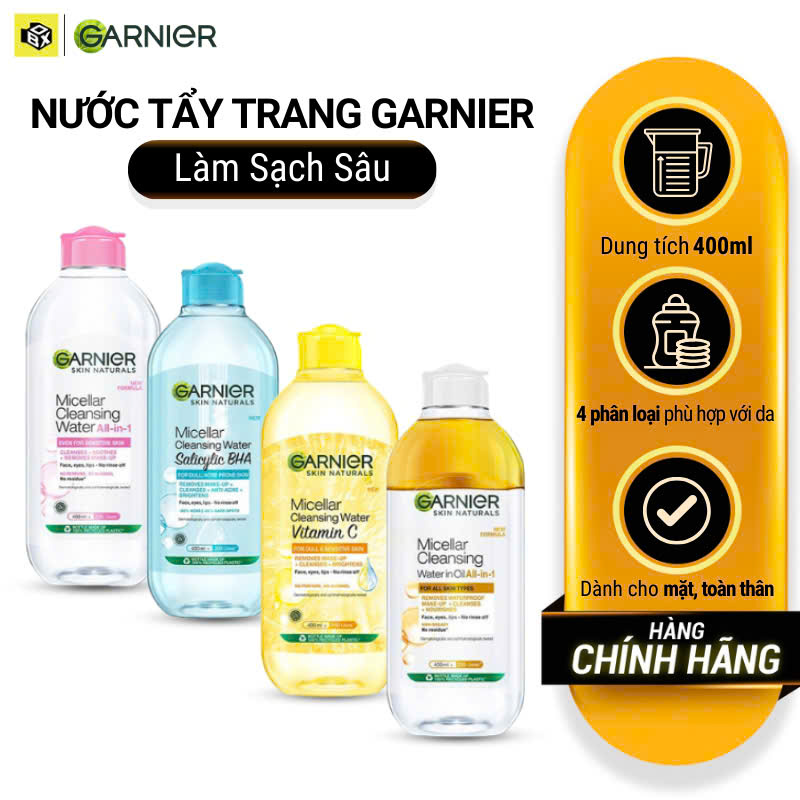 Nước làm sạch và tẩy trang dành cho mọi loại da Garnier Micellar Water 400ml , bạn có thể chọn phân loại phù hợp với da bạn