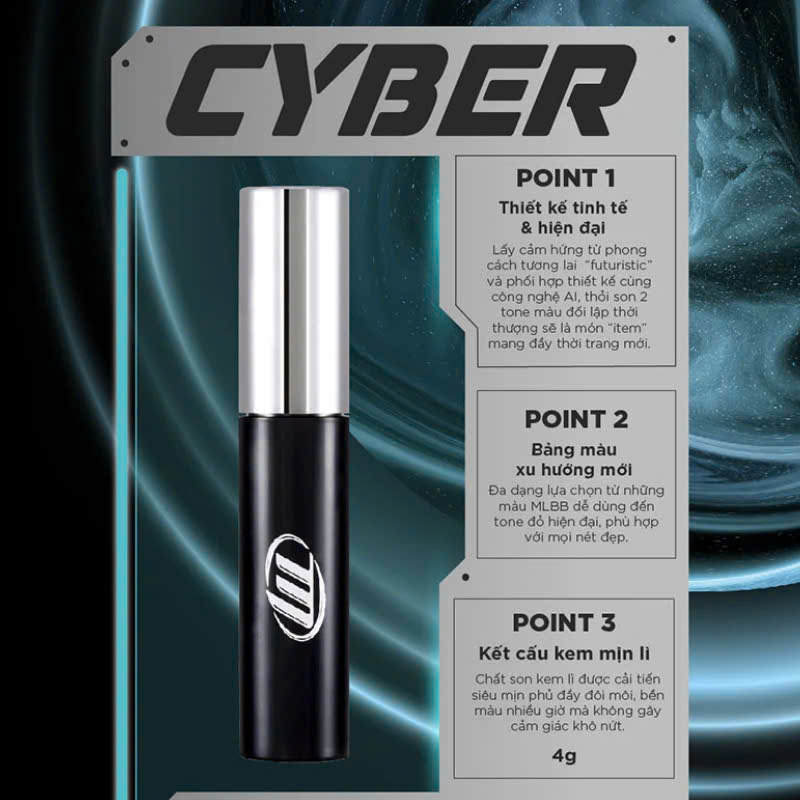 - Cảm hứng son độc đáo: Được lấy cảm hứng từ nét đẹp siêu thực và được phát triển bởi công nghệ trí tuệ nhân tạo AI, Merzy Cyber Mellow Tint là thỏi son mang đầy hơi thở thời trang hiện đại