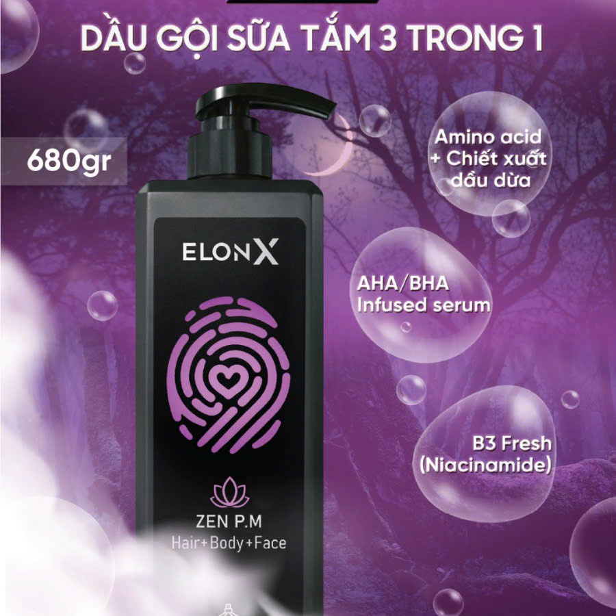 Sữa tắm gội hương nước hoa cao cấp ElonX ZEN P.M cho nam 680gr
