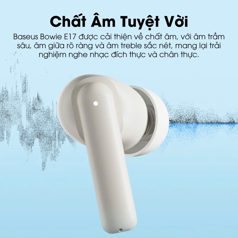 - Baseus Bowie E17 được cải thiện về chất âm, với âm trầm sâu, âm giữa rõ ràng và âm treble sắc nét, mang lại trải nghiệm nghe nhạc đích thực và chân thực.
