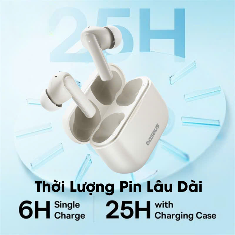 - Pin dung lượng cao cho phép tai nghe hoạt động liên tục lên đến 25 giờ, giúp bạn thưởng thức âm nhạc suốt cả ngày mà không cần lo lắng về việc hết pin.