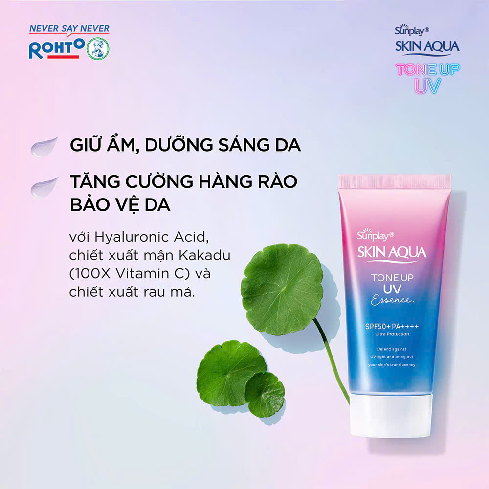 • Chỉ số SPF 50, PA++++ trong kem chống nắng nâng tông Skin Aqua Tone Up sẽ bảo vệ làn da tối ưu khỏi các tác hại của ánh nắng mặt trời như tia tử ngoại, bức xạ mặt trời và các tác nhân gây hại khác, ngăn ngừa sự hình thành đốm nâu, sạm nám, ức chế sản sinh Melanin, giảm thiểu lão hóa da và hạn chế nguy cơ ung thư da.